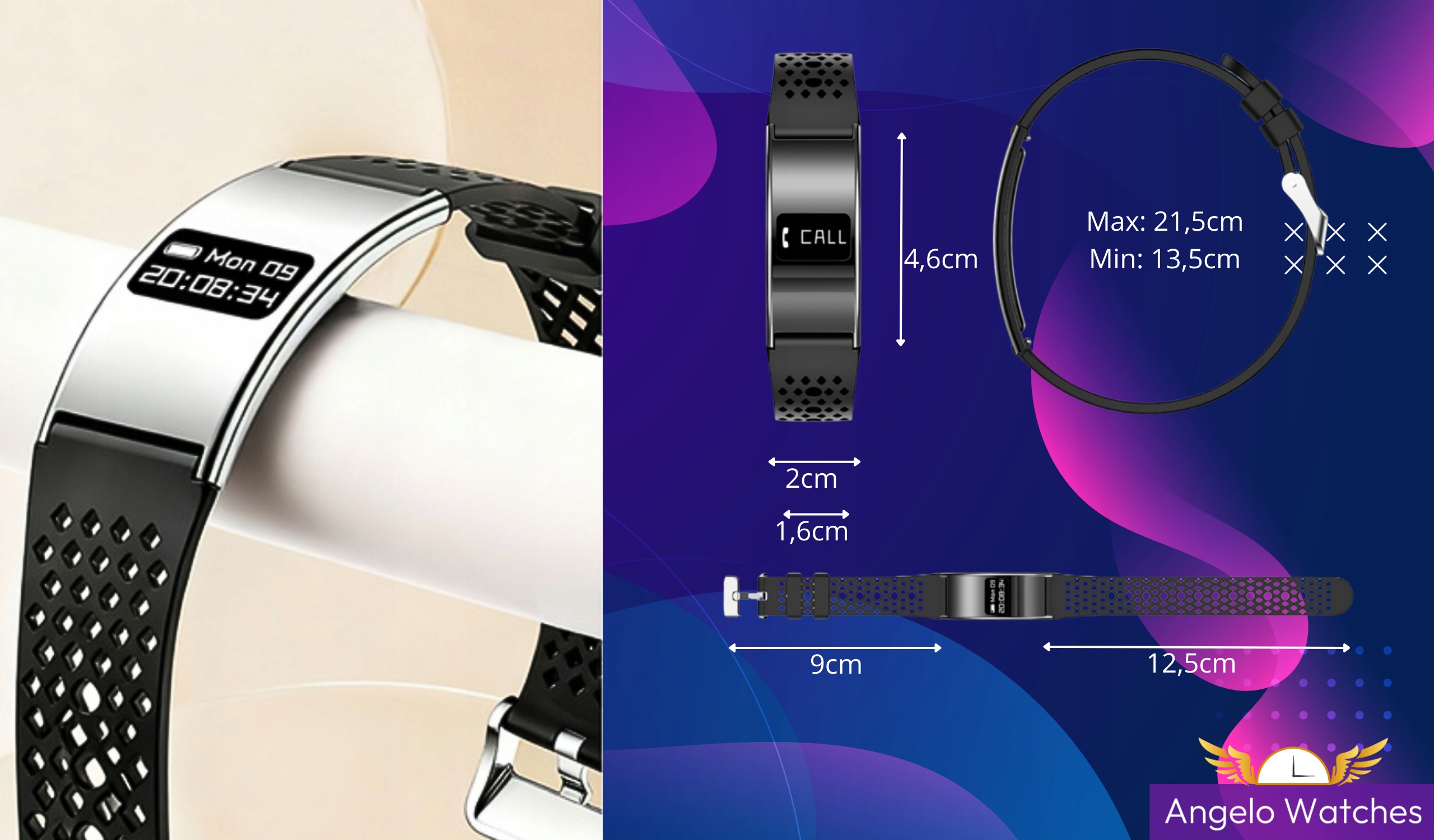 Inteligentna bransoletka Angelo Watches® rejestruje Twoją aktywność w czasie rzeczywistym, dostarczając najważniejszych danych treningowych bezpośrednio z poziomu nadgarstka.