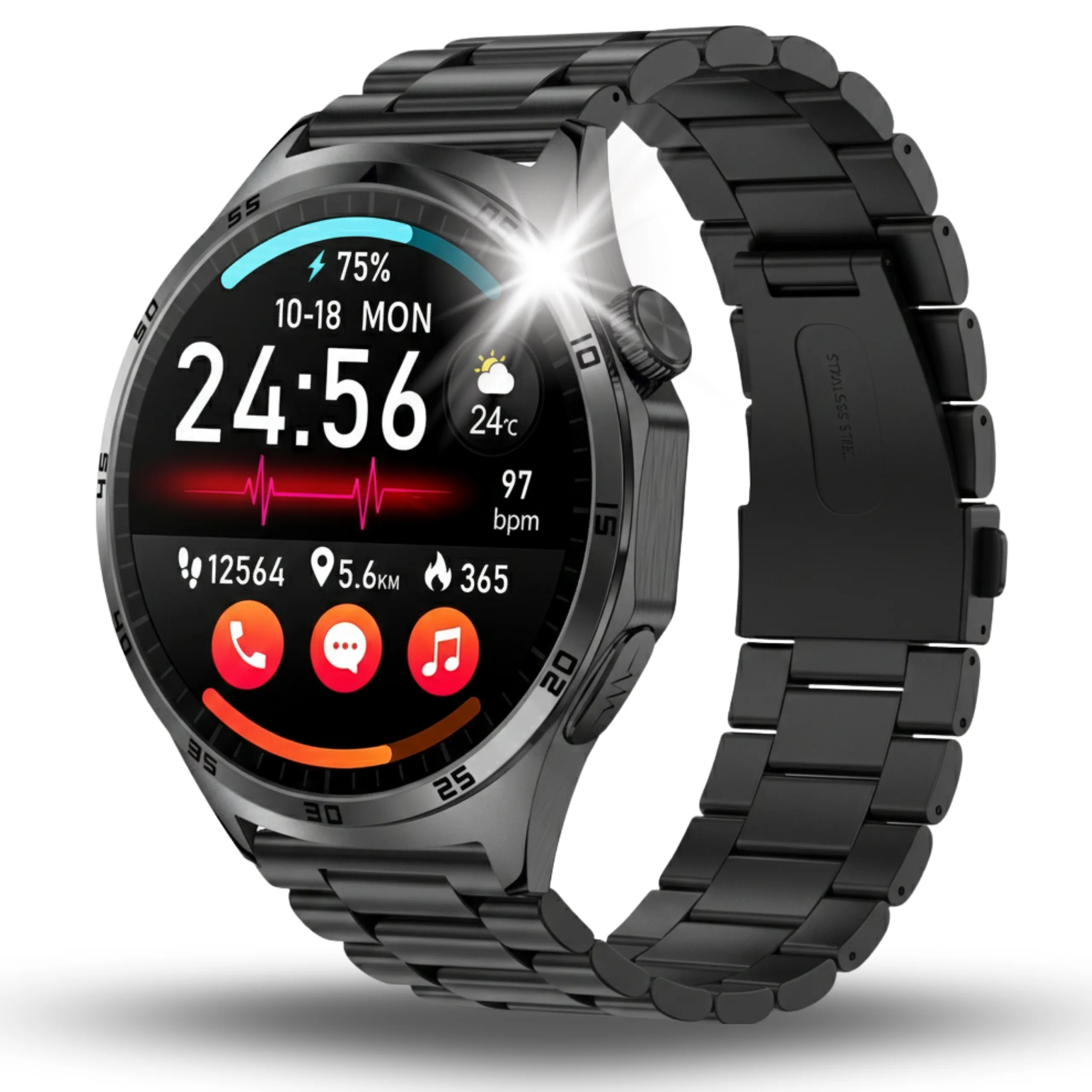 Smartwatche męskie oferują funkcje takie jak powiadomienia z telefonu, obsługa połączeń, monitorowanie aktywności fizycznej, liczenie kroków, spalonych kalorii oraz analiza snu. Dzięki temu zegarek staje się praktycznym narzędziem wspierającym organizację dnia i kontrolę aktywności.