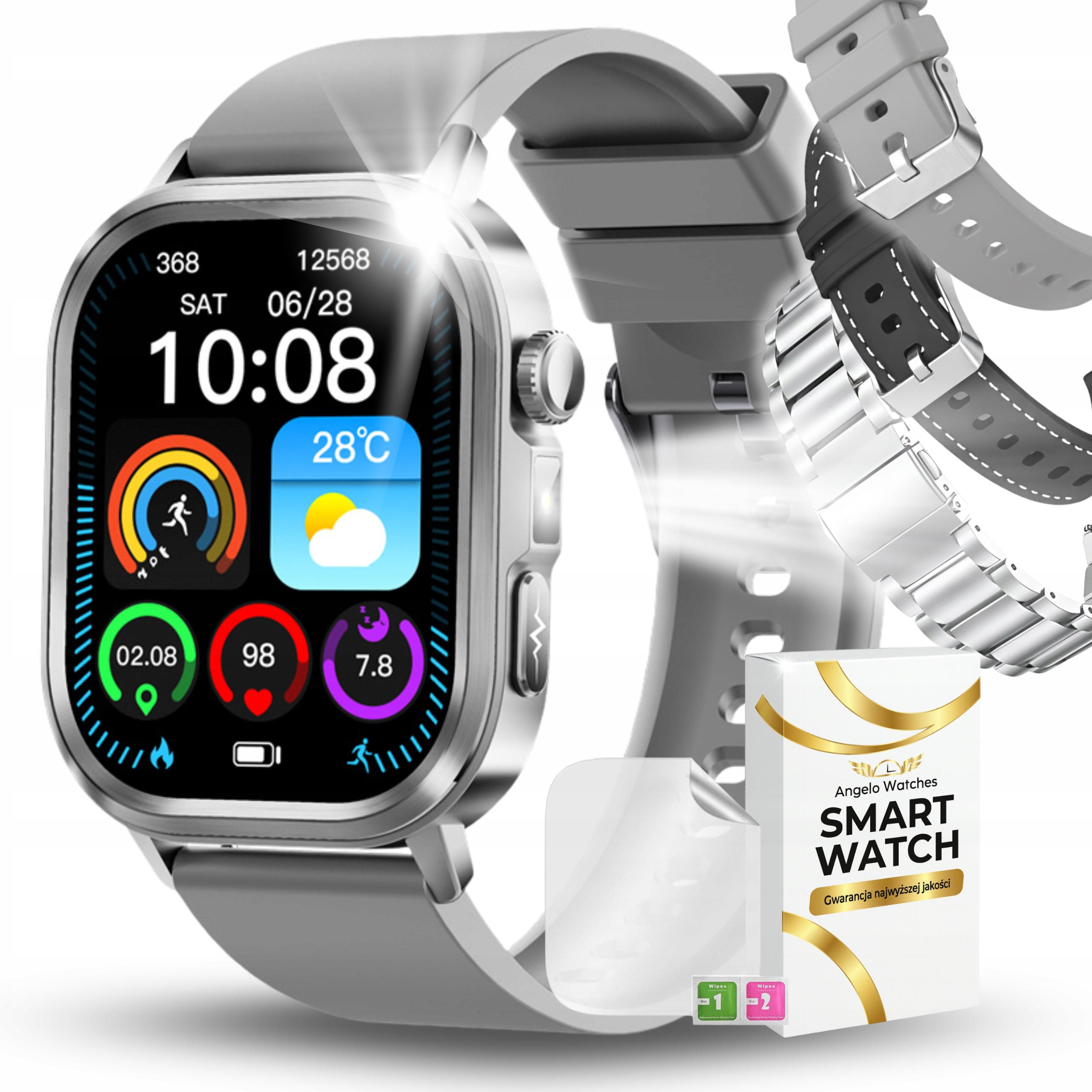 Smartwatche męskie w kolorze srebrnym to propozycja dla mężczyzn ceniących czytelny design, funkcjonalność i elegancję. Dzięki uniwersalnej kolorystyce doskonale sprawdzają się zarówno w pracy, jak i podczas codziennych aktywności.