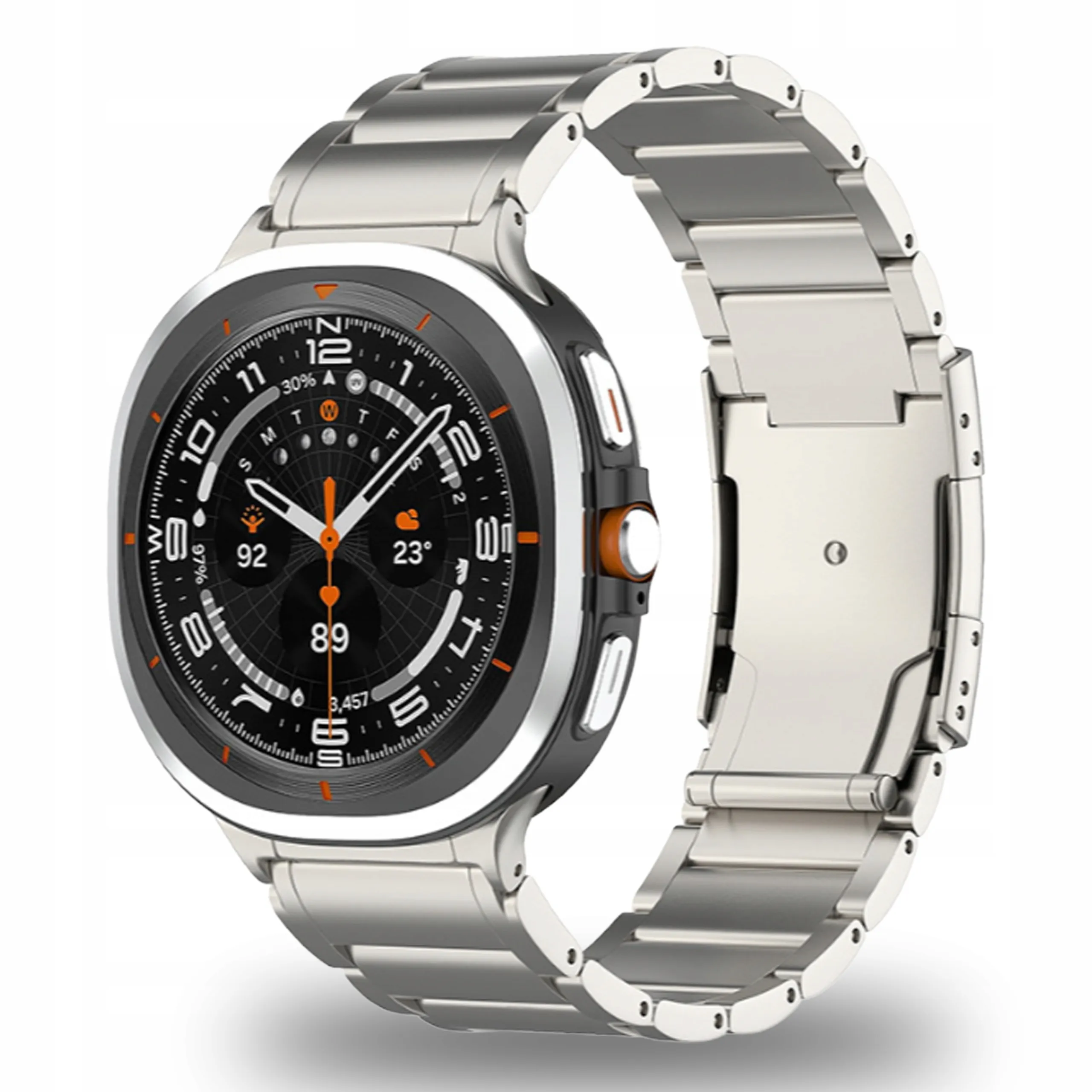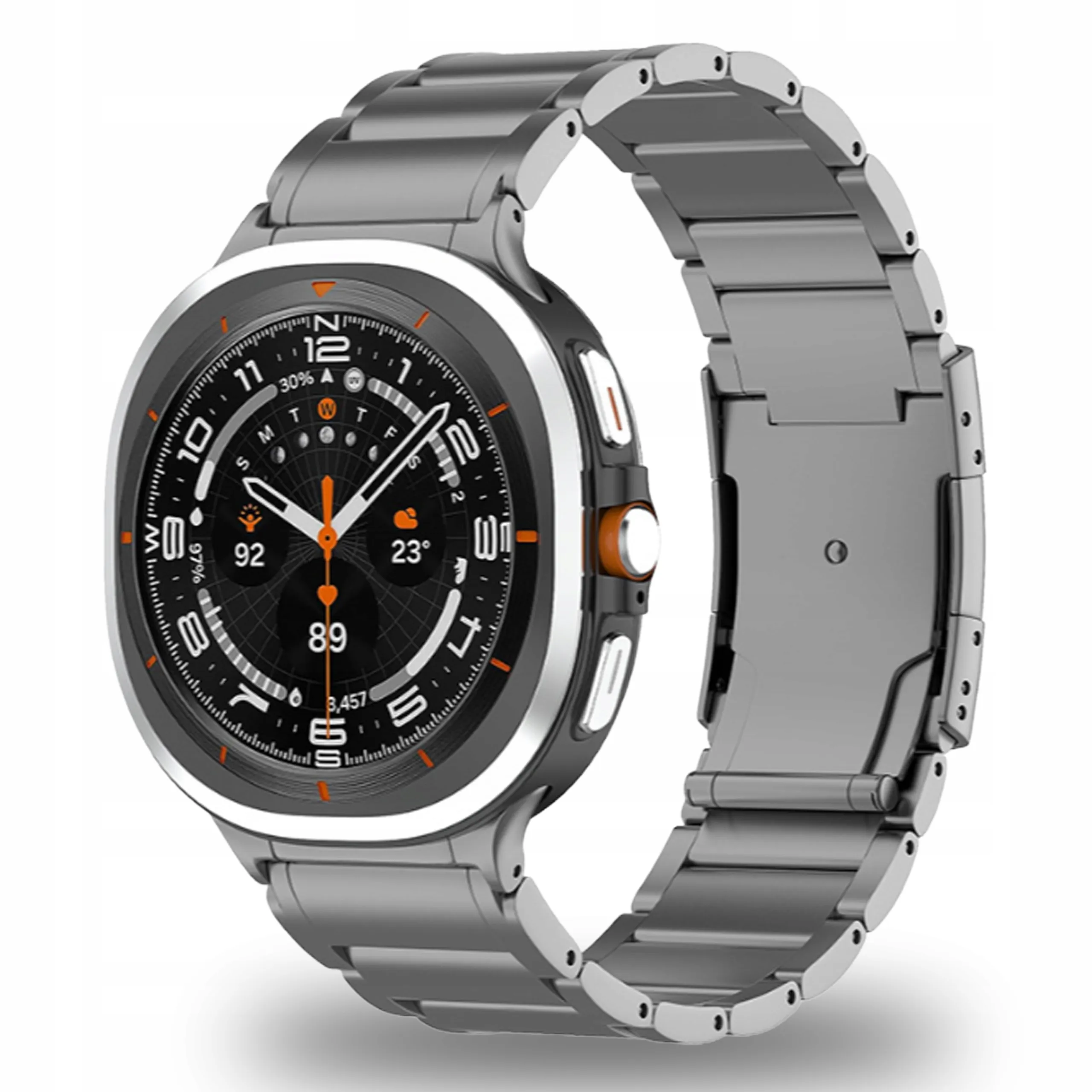 Ta tytanowa bransoleta to coś więcej niż zwykły pasek. Została zaprojektowana specjalnie z myślą o Samsung Galaxy Watch Ultra 47 mm (SM-R705FZ). Dzięki precyzyjnemu wykonaniu doskonale przylega do koperty zegarka, podkreślając jego nowoczesny charakter i sportową elegancję.
